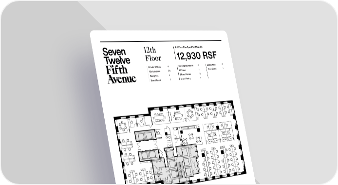 12th Full Floor Plan Open Plan (Test-Fit) Floor 12,930 RSF Private Oiffces 4 Conference Rooms 3 Copy Areas 3 Workstations 70 IT Room 1 Coat Closet 1 Reception 1 Phone Rooms 6 Board Room 1 Open Pantry 1 th 712 5 Avenue Peter Brindley Douglas Neye Sean Kirk New York, NY 10019 Executive Vice President, Senior Vice President Assistant Vice President – Leasing Head of Real Estate 212 237 2976 212 237 3168 SevenTwelveFifth.com 212 237 3156 dneye@pgre.com skirk@pgre.com pbrindley@pgre.com
