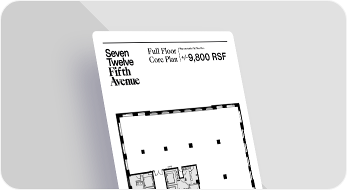 Full Floor Representative Full Floor Plan Core Plan +/- 9,800 RSF th 712 5 Avenue Peter Brindley Douglas Neye Sean Kirk New York, NY 10019 Executive Vice President, Senior Vice President Assistant Vice President – Leasing Head of Real Estate 212 237 2976 212 237 3168 SevenTwelveFifth.com 212 237 3156 dneye@pgre.com skirk@pgre.com pbrindley@pgre.com
