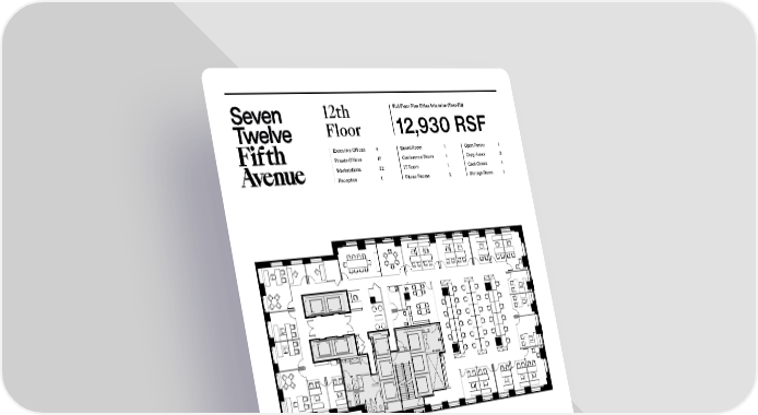 12th Full Floor Plan Oiffce Intensive (Test-Fit) Floor 12,930 RSF Executive Oiffces 4 Board Room 1 Open Pantry 1 Private Oiffces 17 Conference Room 1 Copy Areas 3 Workstations 32 IT Room 1 Coat Closet 1 Reception 1 Phone Rooms 2 Storage Room 1 th 712 5 Avenue Peter Brindley Douglas Neye Sean Kirk New York, NY 10019 Executive Vice President, Senior Vice President Assistant Vice President – Leasing Head of Real Estate 212 237 2976 212 237 3168 SevenTwelveFifth.com 212 237 3156 dneye@pgre.com skirk@pgre.com pbrindley@pgre.com