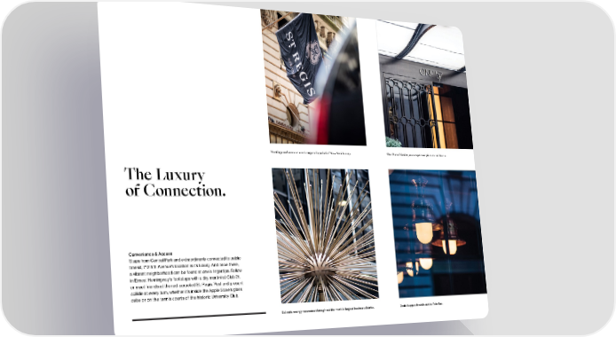 Meetings and more at a red-carpeted symbol of New York luxury. The Plaza District, an exceptional place to call home. The Luxury of Connection. Convenience & Access Steps from Central Park and extraordinarily connected to public transit, 712 5th Avenue’s location is its luxury. And once there, a vibrant neighborhood can be found at one’s fingertips. Follow in Ernest Hemingway’s footsteps with a dry martini at Club 21, or meet friends at the red-carpeted St. Regis. Past and present collide at every turn, whether it’s inside the Apple Store’s glass cube or on the tennis courts of the historic University Club. Eclectic energy resonates throughout the world’s largest business district. Deals happen fireside at the Polo Bar.