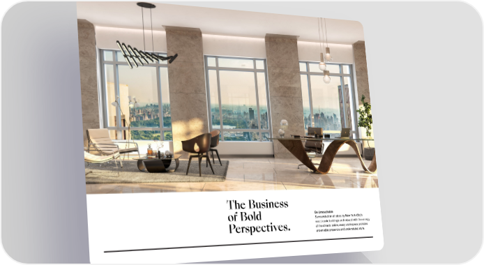The Business of Bold Be Untouchable Surrounded on all sides by New York City’s most iconic buildings and imbued with the energy Perspectives. of the streets below, every workspace provides undeniable presence and understated style.